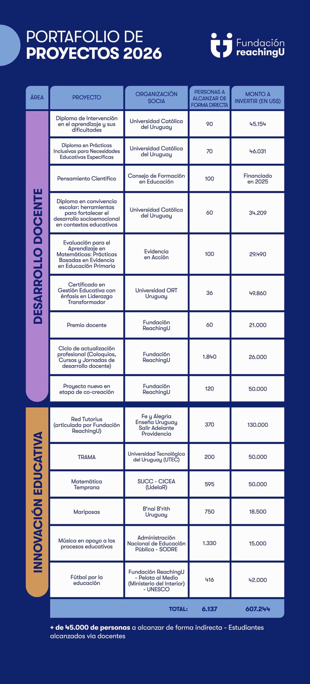 En 2026, Fundación ReachingU invertirá más de US$600.000 en 16 proyectos educativos, fortaleciendo la formación docente y promoviendo experiencias educativas innovadoras que alcanzarán a miles de estudiantes en Uruguay.
